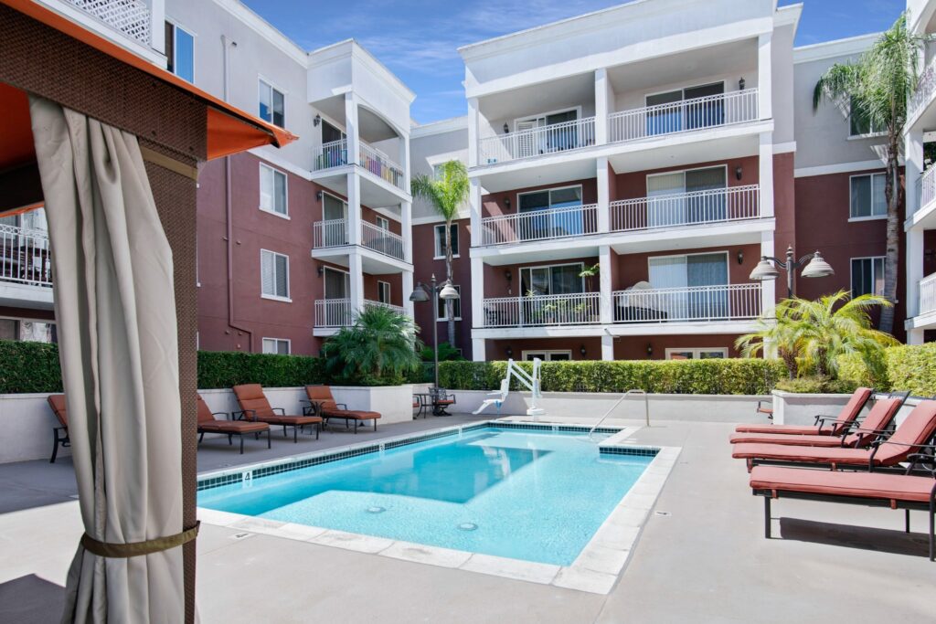 Modern, elegant, amenity rich, & located in vibrant Baldwin Hills surrounded by shopping, dining, entertainment, transit, schools, & nature trails, this turnkey 1 bed 1 bath 776 sf condo with a private balcony & lovely view of the pool at the Bedford Promenade is a dream for savvy first time home buyers & investors alike. Complete with 2 side-by-side garage parking spaces, guest parking, private storage locker, gym, rec room, amazon locker, & on site management. Come see this one today! FHA/VA Approved!